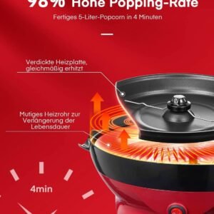 30 reviews for FOHERE-Home Popcornmaschine, 5,5 L Popcornmaschine mit Zucker, Öl, Butter, Antihaftbeschichtung und abnehmbarer Heizfläche, leise und schnell, großer Deckel als Servierschale
