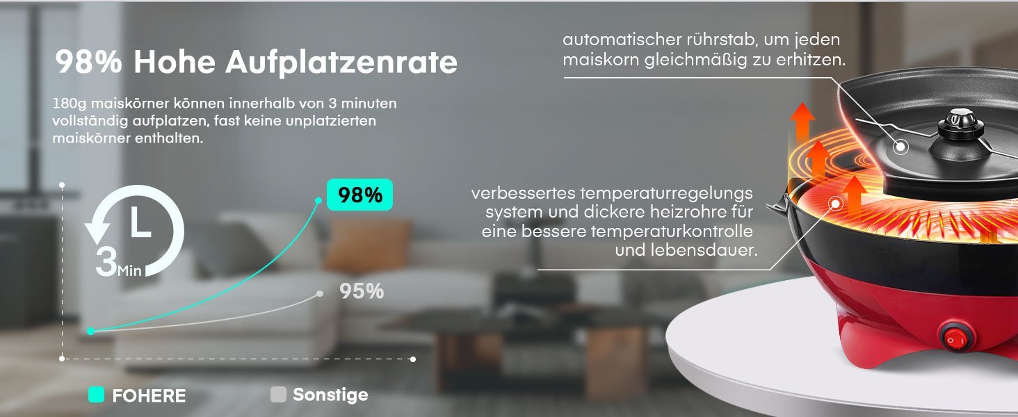 Der FOHERE Popcornmaschine ist einfach fantastisch! Innerhalb weniger Minuten gibt es frisches, leckeres Popcorn ¨C besser als im Kino.