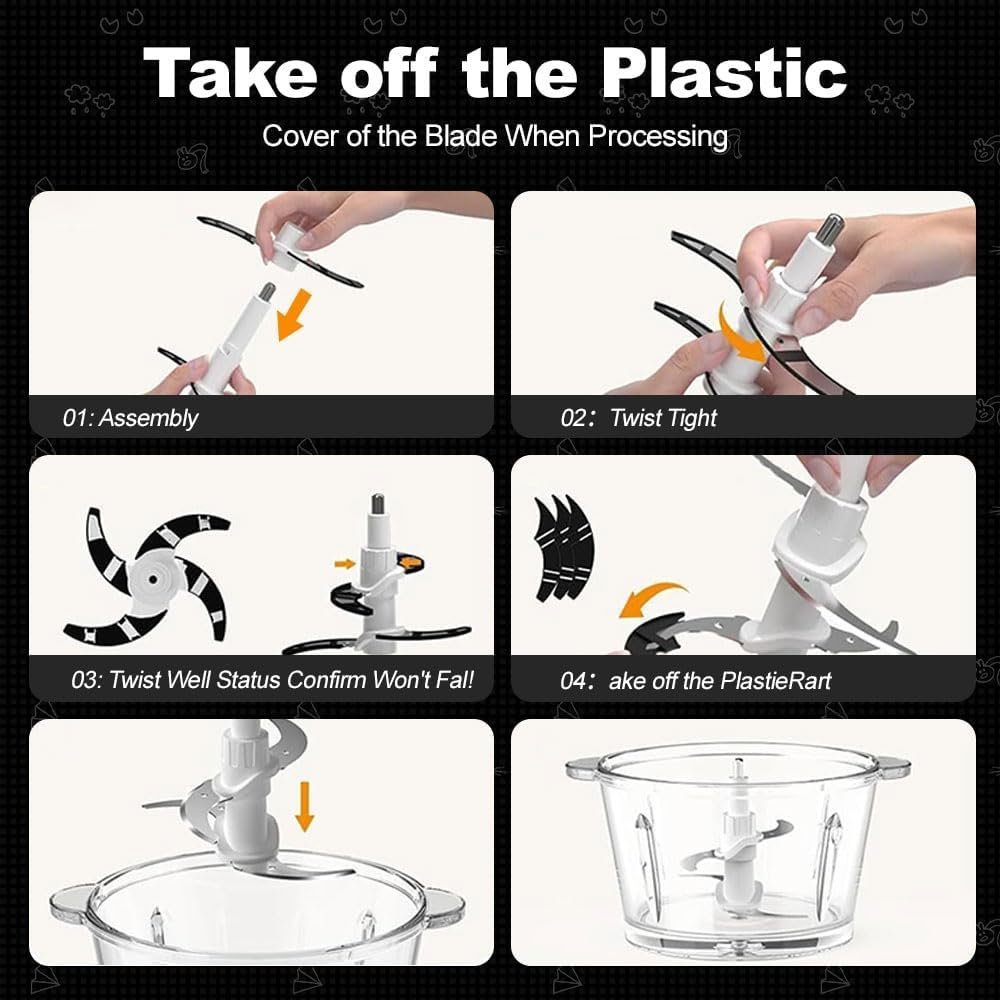 SPZTJK Multifunktionaler Elektrischer Schneidroboter aus, Fleischhacker für den Hausgebrauch, Zerkleinerer Elektrisch,zwei Schüsseln(Edelstahls & Glass)und klingen,zum Zerkleinern und Hacken geeignet, Ideal für Gemüse, Knoblauch, Salat, Babynahrung